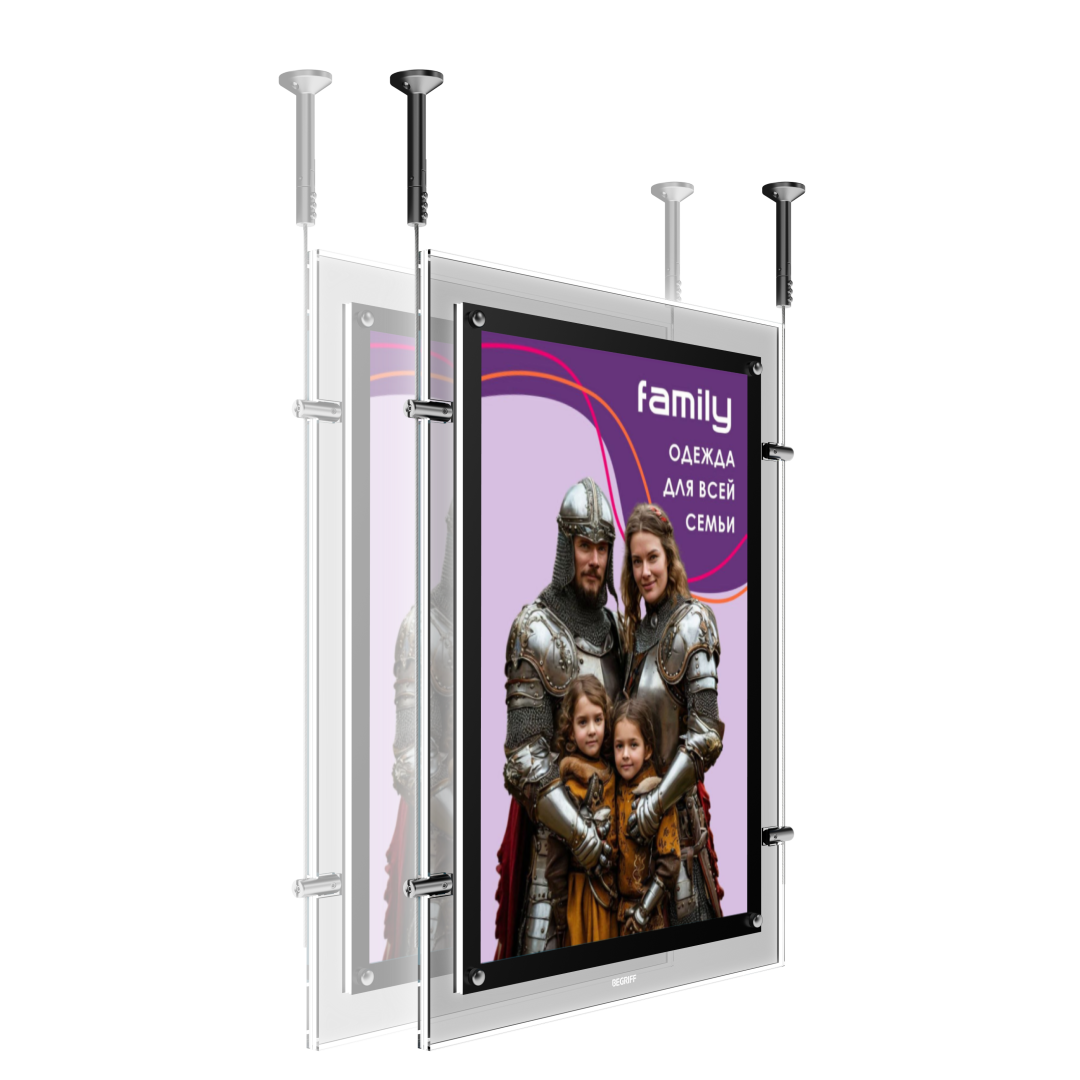 Рекламная световая панель Crystal двусторонняя подвесная (BG-C-DS-HS-A3) предназначена для функционально-декоративного освещения