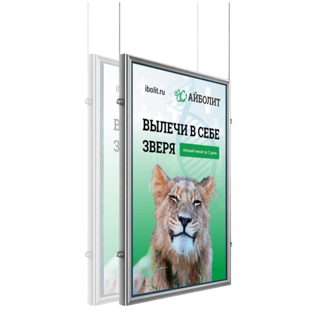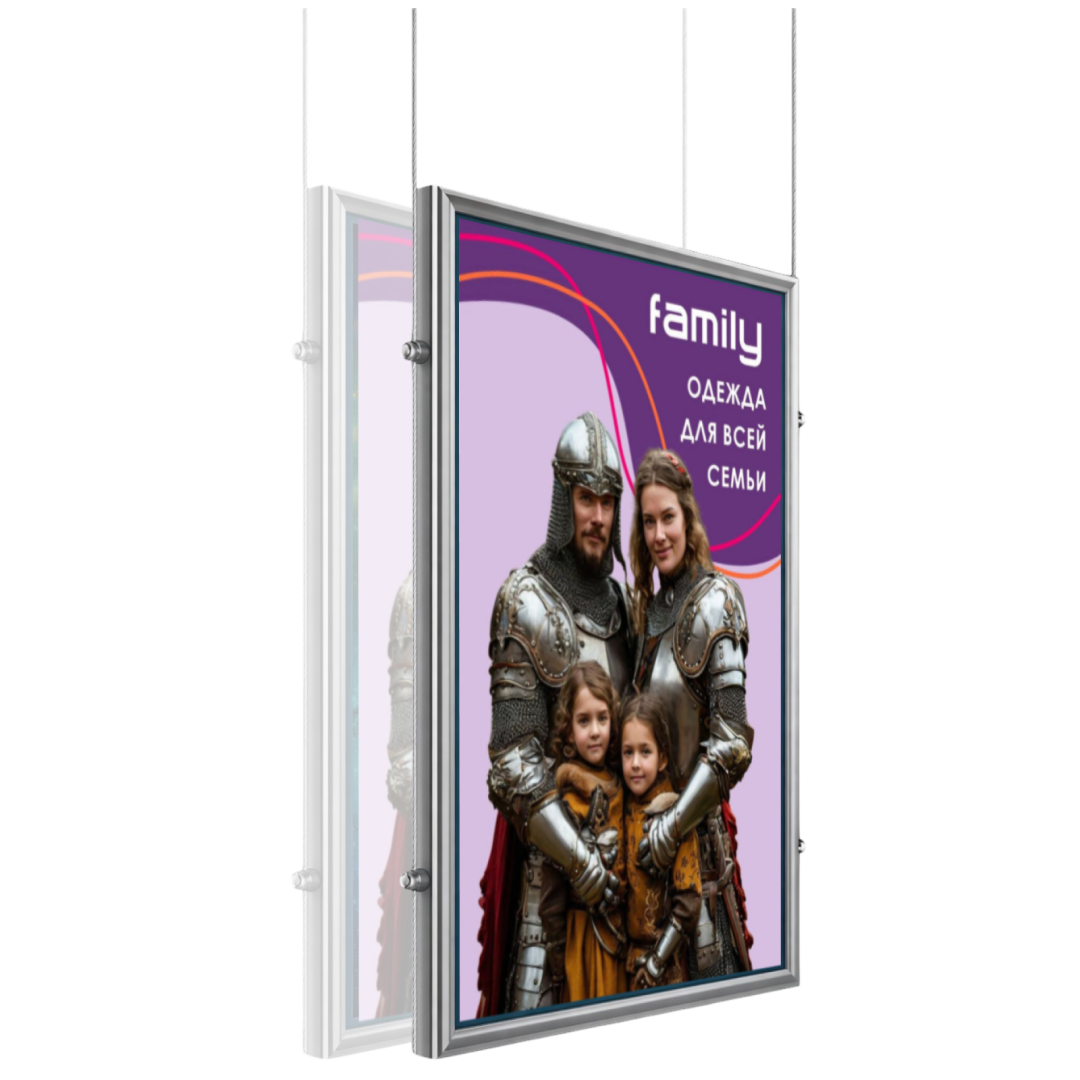 Что входит в комплектацию подвесной двусторонней рекламной панели Frame формата А1